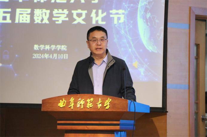 学校教务处处长李傅山回顾了在近70年的办学历史中,创造的公社数学”、“优选法”和“统筹法”、“长清模式”、以及走出了郭雷等一批在数学领域卓有建树的杰出校友等许多可圈可点的骄人成绩。充分肯定了数学文化节在服务学生成长成才、弘扬数学文化、传承数学家精神,落实立德树人根本任务,培养具有曲师特质的新时代大学生方面的重要意义。勉励学生长燃对数学的热爱之情,积极挖掘数学文化的魅力,潜心数学写就报国之志。