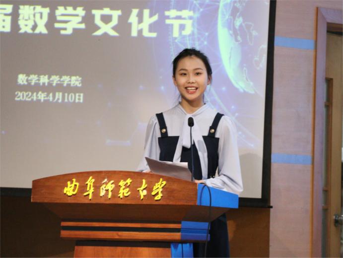 第五届数学文化节在孔子会堂隆重举行。学校党委副书记卢国强、教务处处长李傅山,学生工作处副处长田凯,校团委副书记张颖出席开幕式。数学学院领导、教师和学生代表参加。开幕式由学院党委书记刘进主持。