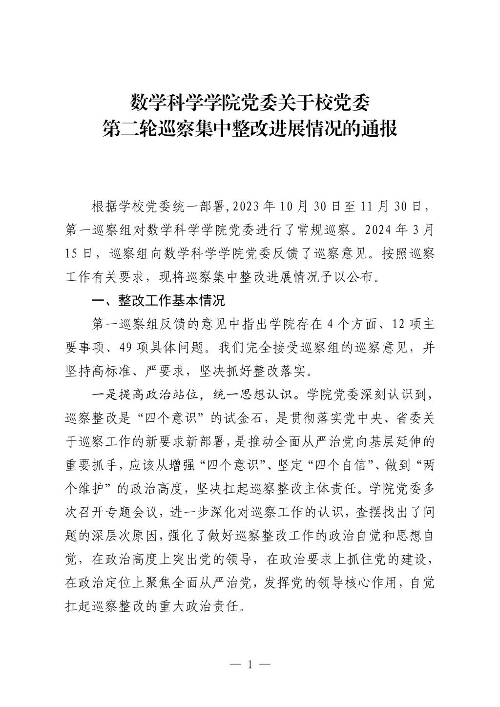 5278论坛 党委关于校党委第二轮巡察集中整改进展情况的通报