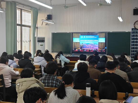 组织观看《中华人民共和国学位法》专题报告。由王培合院长带领全体教师、教学秘书、辅导员进行学习。同时,研究生辅导员韩琳琳带领全体研究生采取集中学习与自主学习相结合的方式观看此次直播学习。