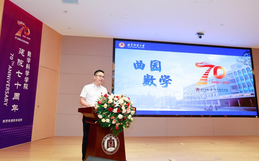 会上,学校党委副书记、校长张洪海在讲话中指出,数学学科作为建校基石之一,底蕴深厚,从建校初期获毛主席赞扬的 “公社数学”,到服务国家建设荣获国家科技进步特等奖的运筹学 “两法”, 众多学术大家在此传道授业,奠定了坚实学术根基。张洪海强调,数学学科实现从专修科到完备人才培养体系的跨越,稳居 ESI 全球前 1%,为学校和山东省数学及相关学科发展贡献卓越,还培养出以郭雷院士为代表的大批精英人才,广受赞誉。张洪海要求数学学科立足现实,展望未来,要聚焦立德树人,在“教育强国、曲师何为”的时代答卷中展现“数学作为”;要勇担创新使命,力争产出更多原创性、标志性成果,为破解关键科学难题贡献“数学方案”;要擦亮学科品牌,为国家战略和区域高质量发展持续贡献“数学力量”,号召全体师生、校友共同谱写曲园数学新的璀璨篇章。