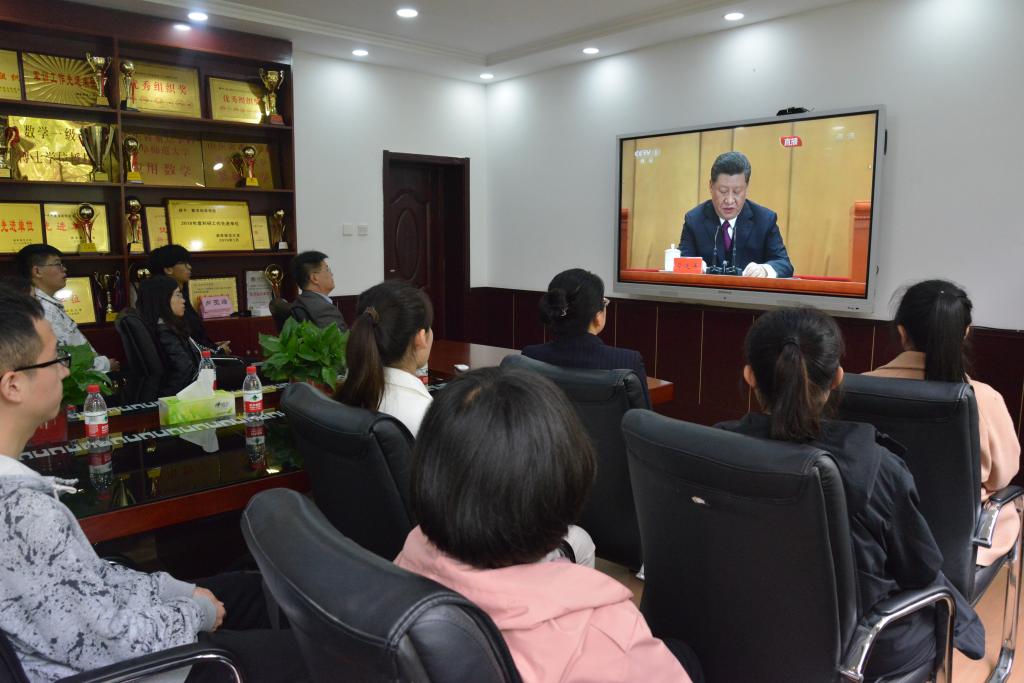 团委组织学生代表于数学楼三楼会议室观看了中央电视台新闻频道直播的纪念五四运动100周年大会。学院党委副书记刘建新、团委书记朱伟卫、辅导员张惠一同观看。