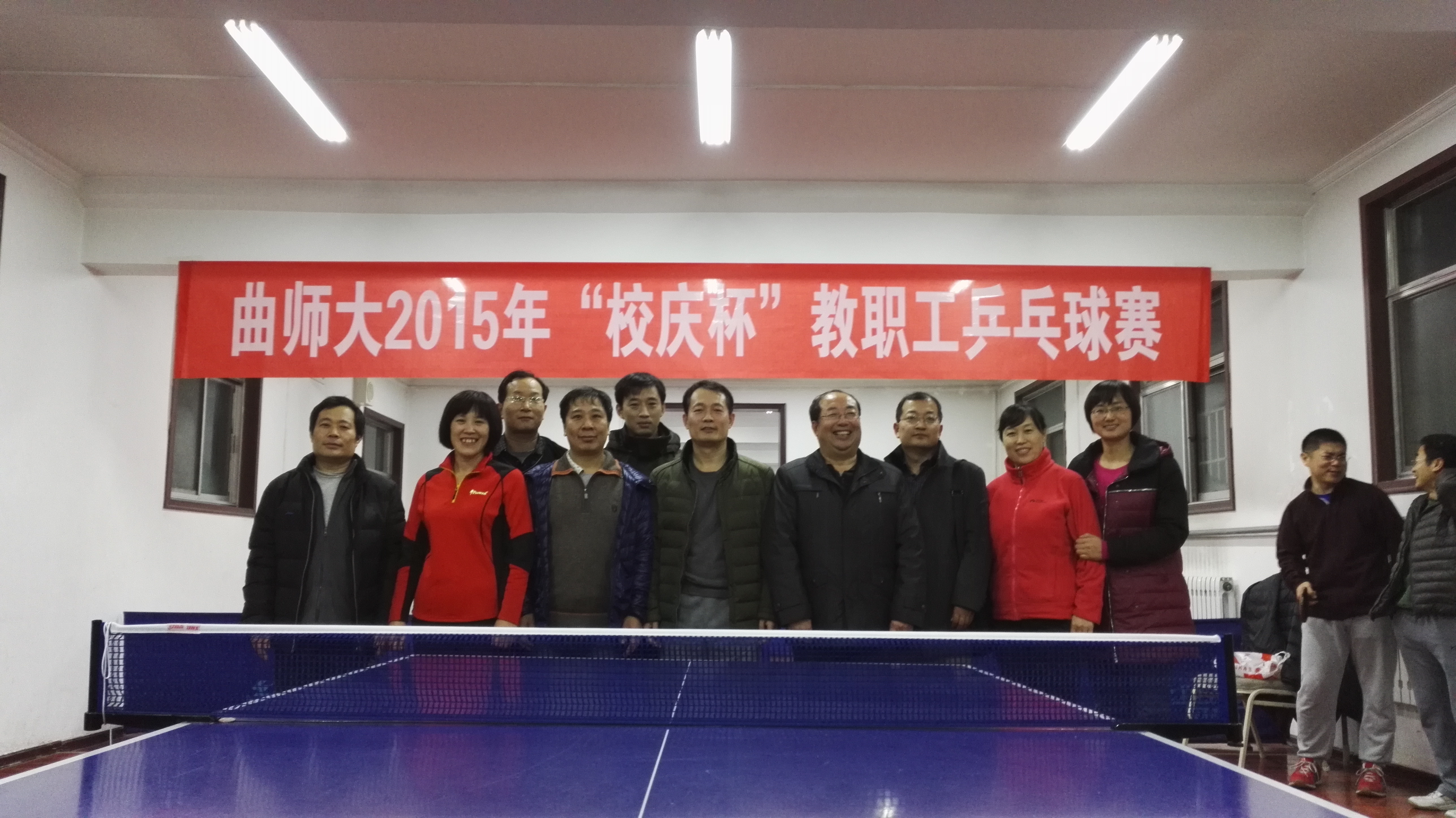 教职工乒乓球队参加了由校工会主办,学校教职工乒乓球协会承办的2015年“校庆杯”教职工乒乓球赛 。 本次乒乓球赛共有16支队伍参赛。比赛项目包括男单、女单、男双、混双、男双,比赛采用五场三胜制,每局比赛采用五局三胜制和11分制规则。