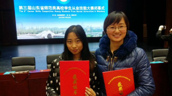 山东省师范类高校学生从业技能大赛从2013年开始举办,现已举办三届。本大赛旨在适应基础教育改革发展对师资培养的需求,从实战角度强化教师基本技能的教学与训练,检验师范生培养质量,全面提升师范类高校学生的教学技能和实践应用能力,充分调动师范类学生专业学习的积极性、主动性和创造性,进一步提高求职技能和就业竞争力,促进教师教育的发展。本届大赛分学前、小学、初中、高中四个学段,其中小学学段包括语文、数学、英语三个学科,初中、高中学段包括语文、数学、英语、物理、化学五个学科,比赛项目包括说课、模拟上课、答辩三个部分。