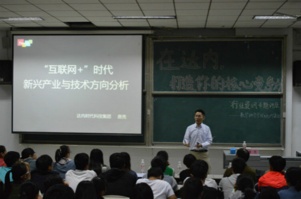 与达内时代科技集团共同主办,学习部承办的"互联网+"时代新兴产业与技术方向分析主题行业资讯专题讲座在综合教学楼101教室成功举办。达内集团教学总监唐亮担任本次讲座的主讲师,数学与统计学院党委副书记王作茂、达内集团驻5278论坛