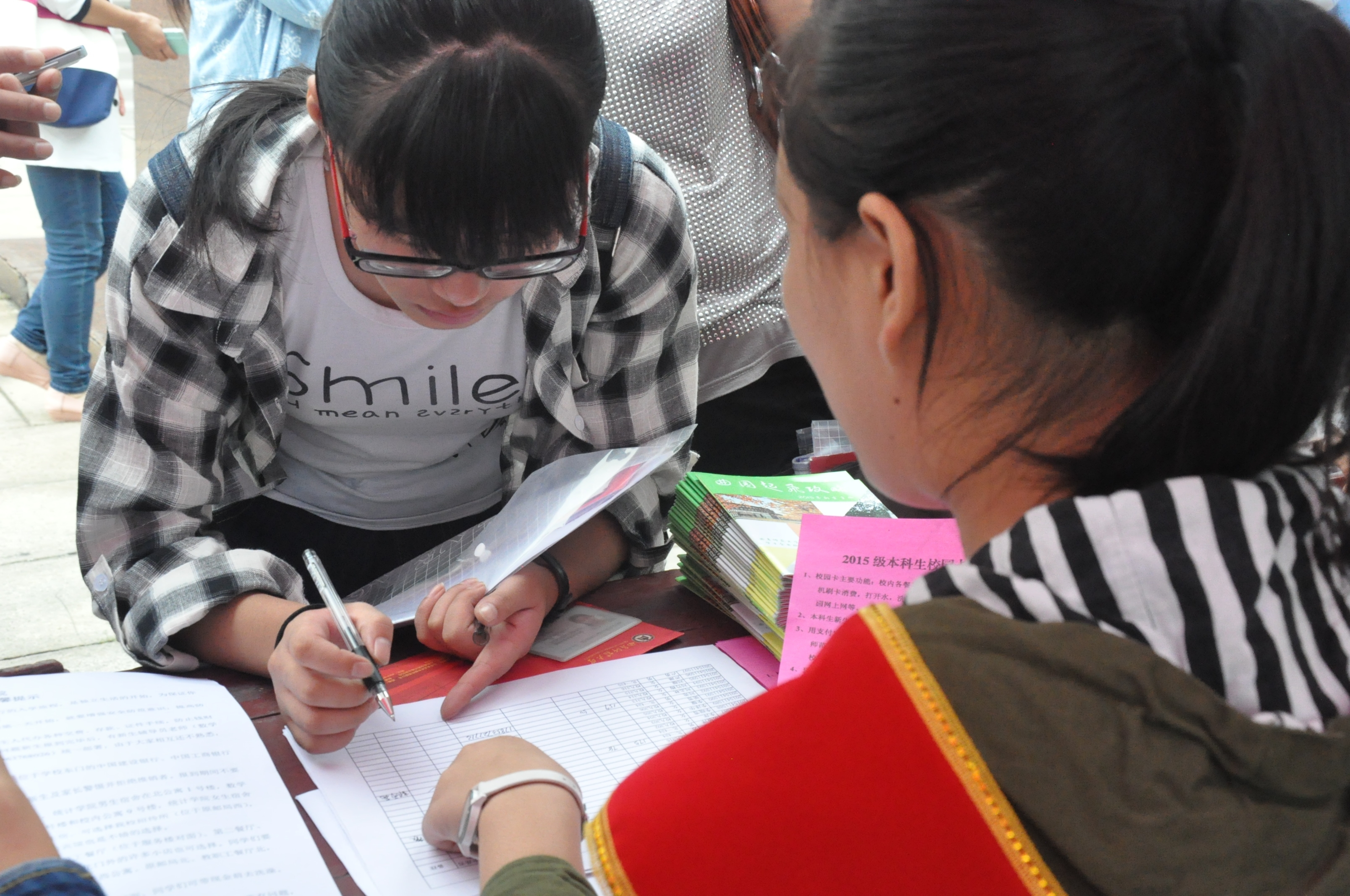 迎新现场,热情、热心、周到的学生会成员及2014级同学为每一位新生提供了报道处登记,宿舍内务整理,校园游览解说的一站式服务,并在报道登记处设立了党员先锋岗,提出了“有困难找党员”的响亮口号,获得了新生家长及新生的一致好评。与此同时,学生会在5278论坛