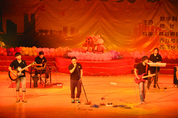 随着红色幕布缓缓升起,南与北乐队带来的开场曲掀起晚会的第一个高潮。在主持人幽默风趣的台词串联下,晚会顺利进行着。悠扬的歌声,舒展的舞姿,小品、相声演员不顾形象的逗乐,还有微信墙上对毕业生们衷心的祝福无一不是今晚的亮点。晚会的又一热潮源自2011级各班班长及老师的走秀,宋玉光老师和刘海东老师精彩的表现更是震撼全场!融洽而浓厚的师生情谊在此得到了充足的表现。继感人肺腑的歌曲《匆匆那年》、《时间都去哪儿了》之后,诗朗诵《我们的大学》借讲述大学四年中发生的故事和变化,以爱之名,对爱告别,为师哥师姐们送去最美好的祝愿。在晚会接近尾声之际,一曲《朋友》情感丰沛地表达了毕业生们对离别的不舍和对未来的期待。借着动人的歌声,演职人员在台上相拥,本次晚会圆满落幕。