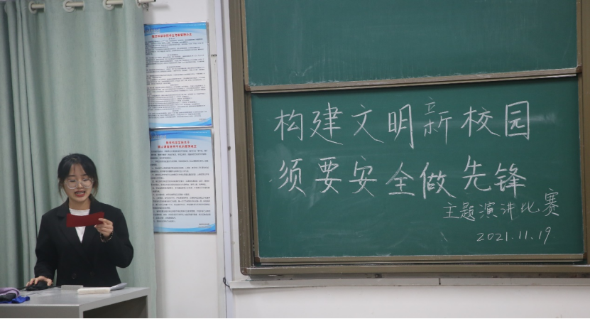 宿管部兼女生部于数学楼101室举办了“构建文明新校园,须要安全做先锋”主题演讲比赛。