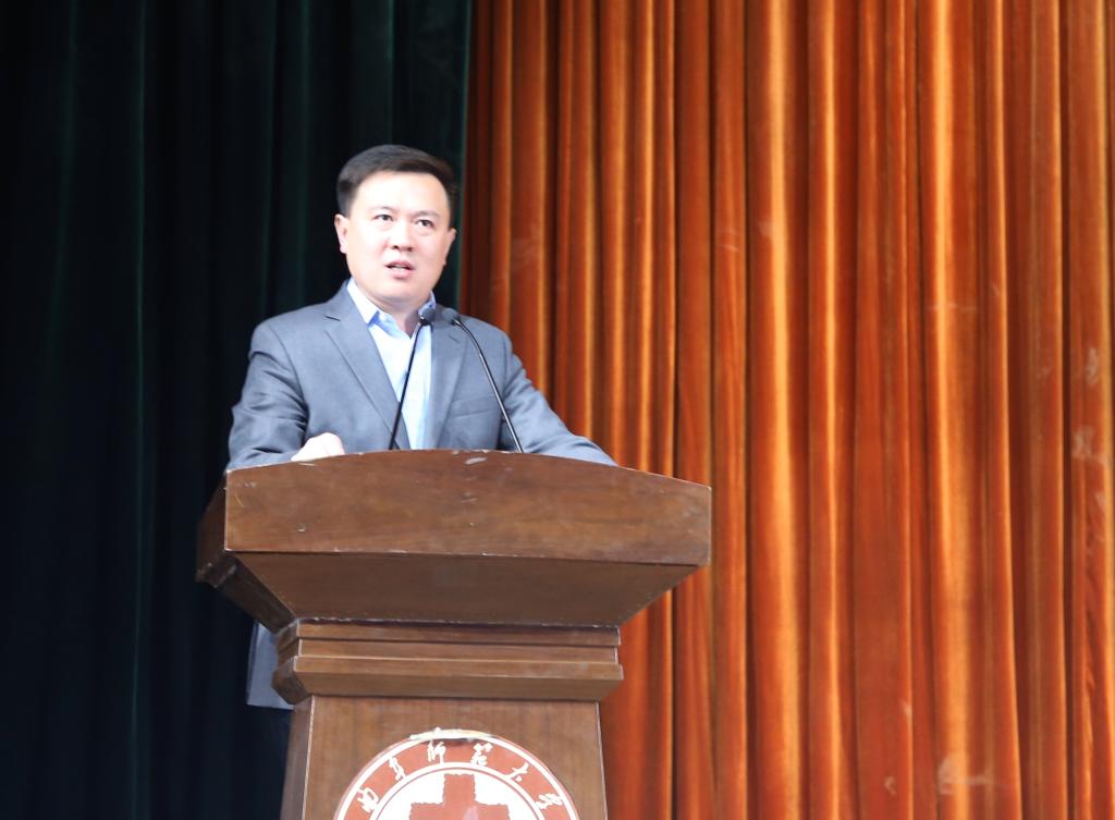 学校党委常委、副校长屈跃宽发表讲话。屈跃宽深度阐述了开展学风建设活动月的背景、意义和目标。他指出,学风对学生、学院以及一门学科的发展至关重要,学风是一所大学的精神气质,是大学精神的一种集中体现,是在长期的办学过程中凝炼出来的,是一个班级、一个集体、一个学院精神层面的总体表现。同时,屈跃宽对学院师生在学习精神、学习态度和学习方法等方面提出要求,他指出,当代大学生要充分认清自我,真正从“要我学”转变为“我要学”,立大志、明大德、成大才。学生党员、学生干部要深刻认识到在学风建设中的重要引领作用,深刻学习领悟党的十九届六中全会精神,切实争当学习工作的模范与榜样;辅导员老师要严格要求,加强班级建设,抓班风促学风,为学院思想政治教育与学风融为一体而共同努力。