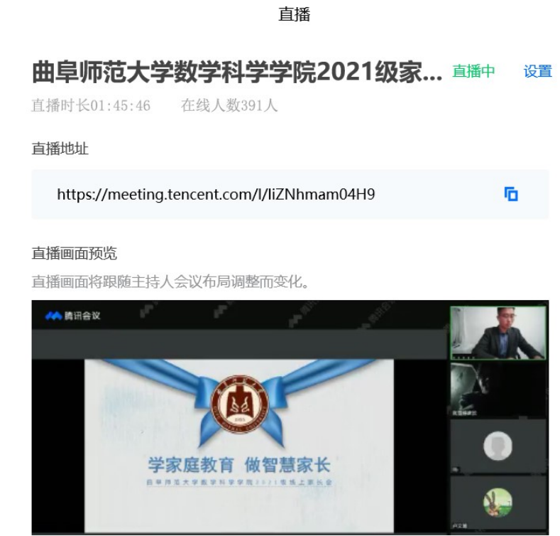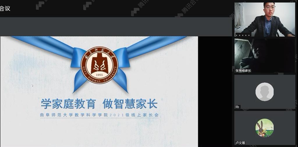 讯(通讯员:吕瑞源)11月28日晚,学院2021级以腾讯会议直播的方式在数学楼311举行了线上云家长会。家长会由2021级辅导员高思明、吕瑞源主讲,学院2021级家长收听收看了本次会议。