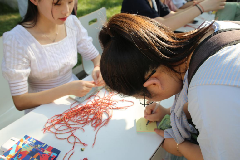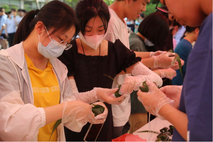 折叶、盛料、压实、裹叶、扎绳……包粽子可是一门技术活。今天学院特意请到了包粽子手艺娴熟的赵老师为同学们展示这门手艺。看着赵老师灵活的手在粽叶间翻飞,同学们不由得赞叹,也更加跃跃欲试。活动现场的师生们先后开展了书写寄语、诗朗诵、包粽子、旱地龙舟等活动,度过了一个充满乐趣和教育意义的端午节。