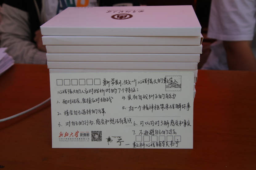学院心理指导老师韦宁表示:“讲座式、课题式的心理指导方式对同学们的触动感往往较弱、指导的实效性不高,如何真正让同学们正视心理问题,找到可倾诉对象是大学生心理指导的难点重点。因此此次尝试用轻松化、年轻化的盲盒方式准备心理锦囊,以校园明信片为媒,与同学们对话。”