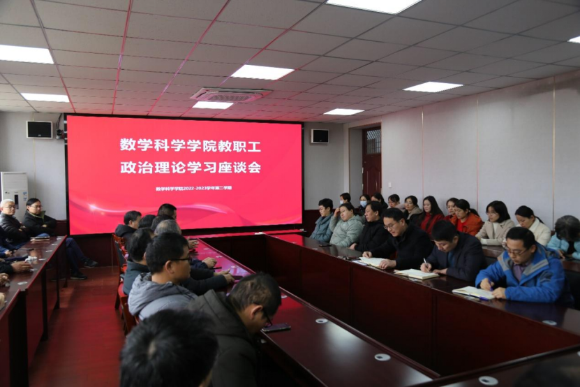 讯(通讯员:赵丰塬)为全面深入学习习近平总书记系列重要讲话和党建、思想政治工作相关文件讲话,2月11日,数学科学学院全体教职工在学院304会议室开展教职工政治理论学习活动,会议由学院党委书记宋国栋主持。