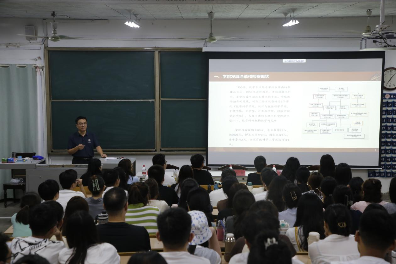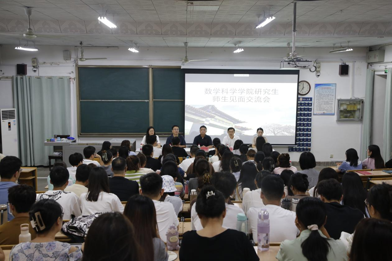 讯(通讯员:韩琳琳 摄 影:董飞翎)2023年9月15日晚,在数学楼201室,数学科学学院举行2023级研究生师生见面会暨入学教育大会。学校科技处副处长武楠、学院党委副书记曲凤东、学院副院长王培合,学院2023级研究生新生、研究生辅导员、教务员等参加活动,活动由研究生辅导员韩琳琳主持。