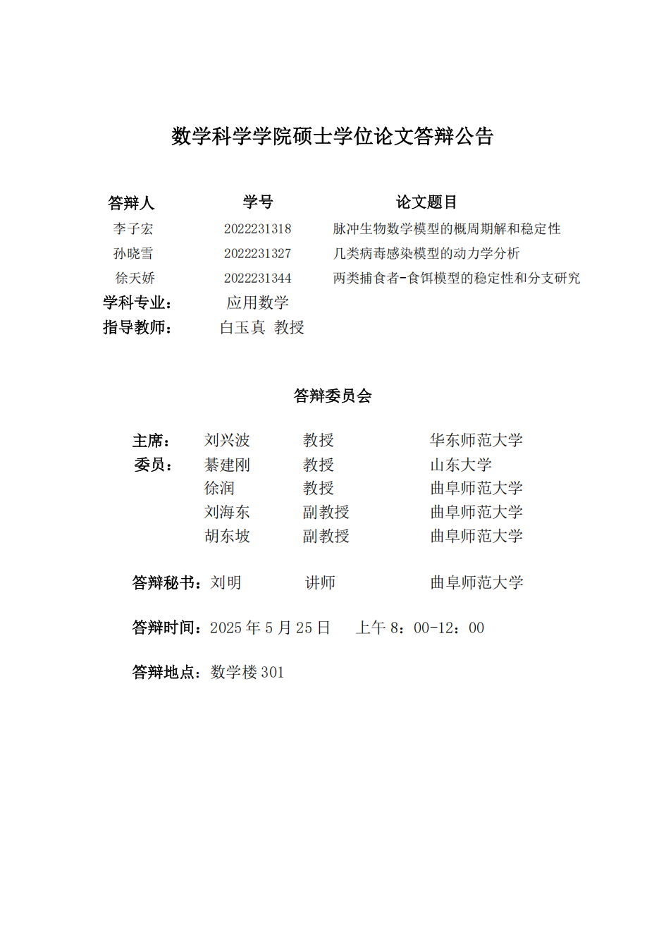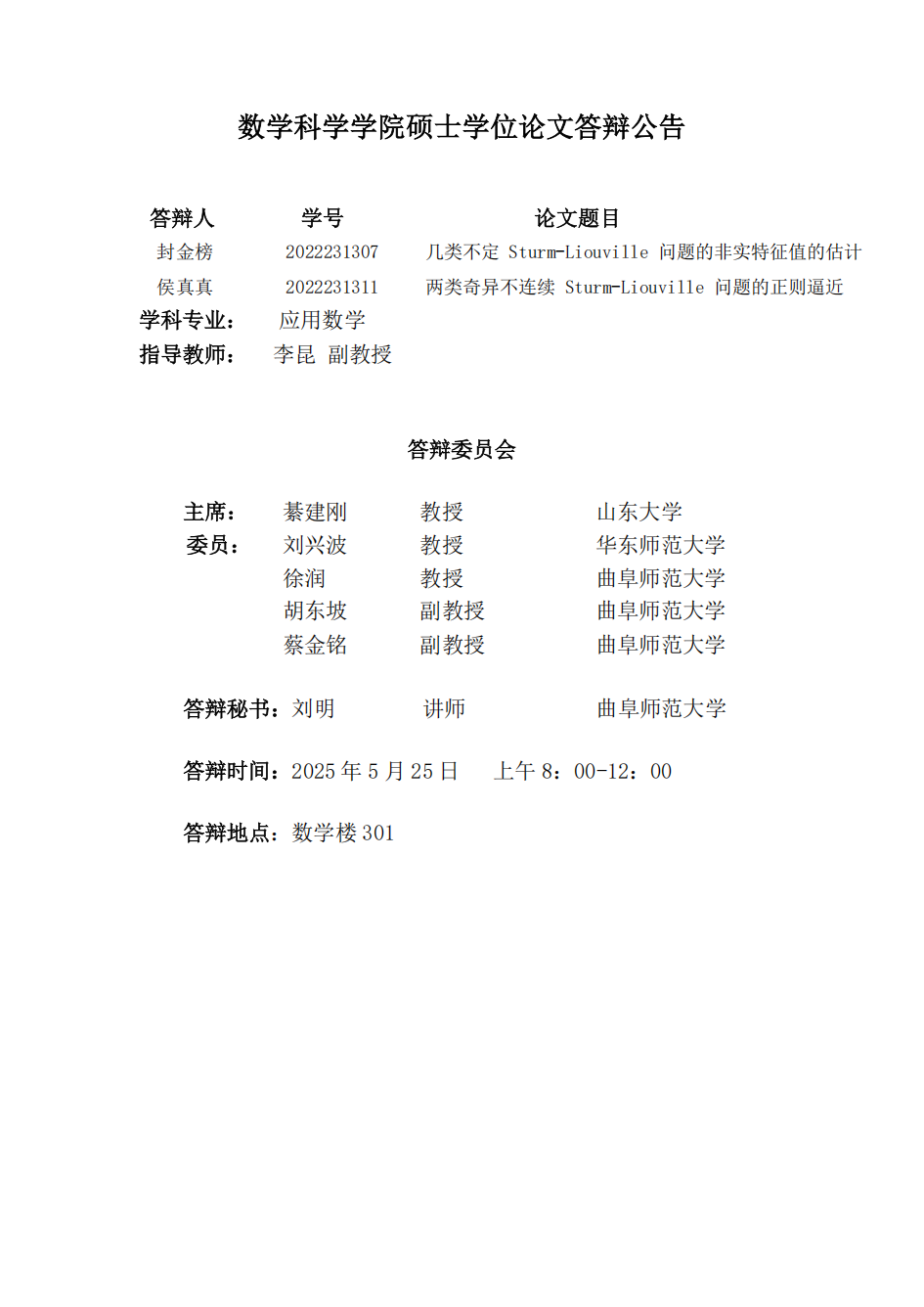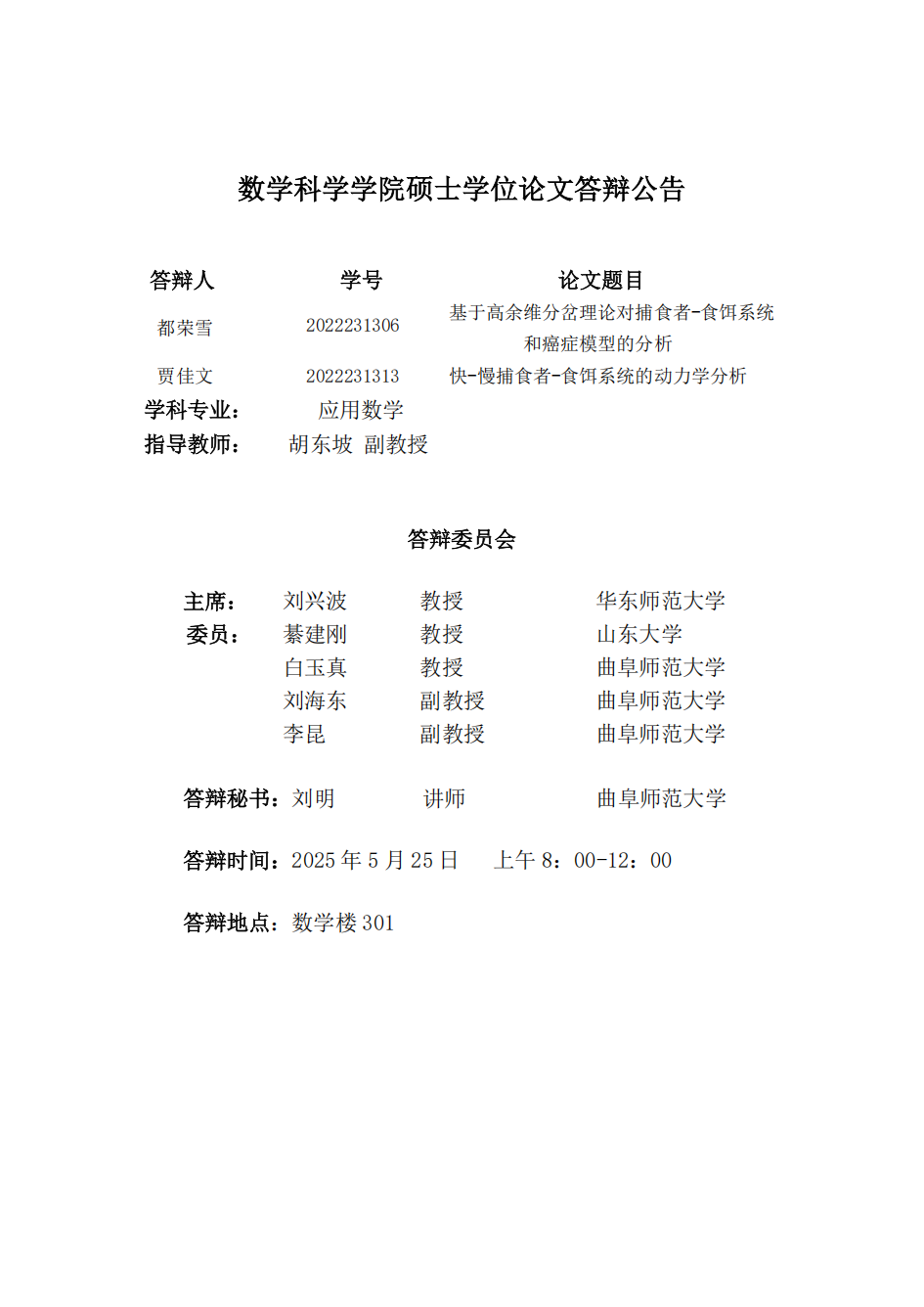 5278论坛 2025届硕士学位论文答辩公告(十)