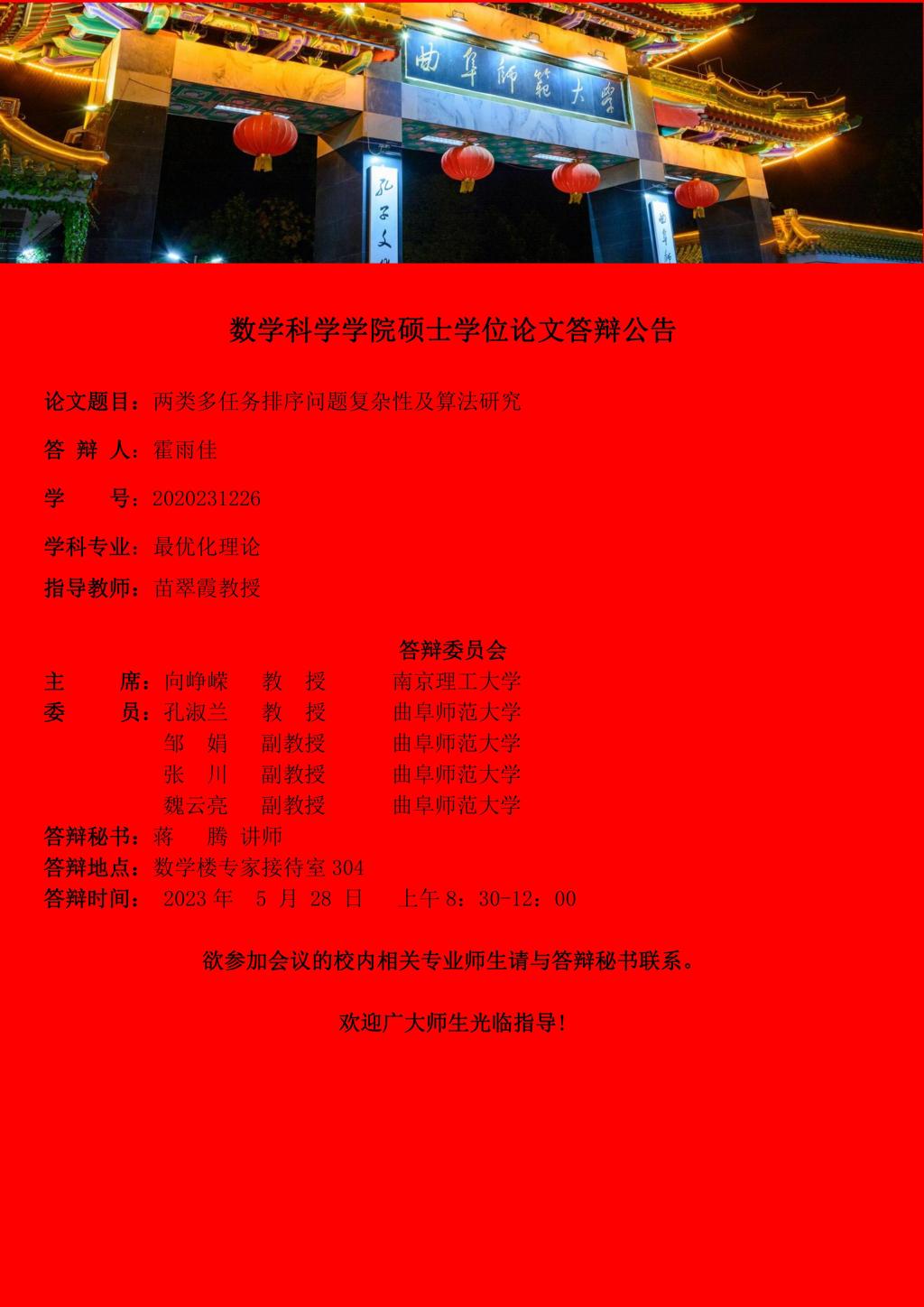 5278论坛 2023年硕士学位论文答辩公告(七)