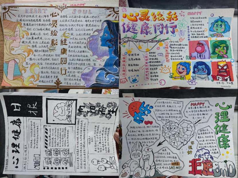 此次活动,同学们积极参与,围绕心理健康知识精心创作手抄报。他们利用课余时间查阅大量心理健康资料,从情绪管理到压力应对,从人际交往到自我认知,内容丰富而详实。这些手抄报色彩斑斓,每一笔每一划都凝聚着同学们对心理健康的深刻认知。