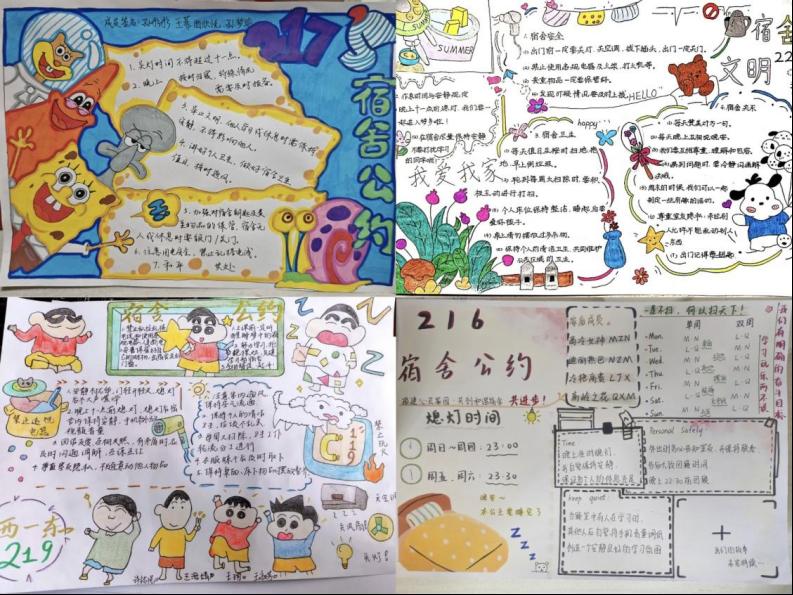 活动中,同学们以宿舍为单位,从生活、卫生和学习等方面出发,共同制定一系列有针对性的宿舍公约,尤其对宿舍作息时间和个人内务整理做了详细要求。同学们将宿舍公约用心装饰成画,张贴在宿舍门外,并表示将严格按照公约执行,携手养成健康的生活方式。