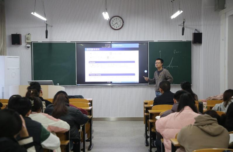 在报告中,梁永祺教授简要介绍了“局部”与“整体”的概念以及“几何性质决定算术性质”的核心思想。他通过具体的数学例子,展示了如何从局部性质推导出整体性质,并解释了几何结构对算术性质的影响。讲座尾声之际,学院师生纷纷踊跃提问。梁永祺教授则以极大的耐心与热情,逐一细致解答,不仅解答了疑惑,更启发了思考。现场气氛活跃,学术氛围浓厚。