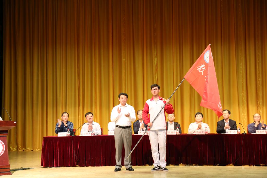 宣传部部长纪洪涛为数学文化节志愿者进行授旗,勉励他们发扬志愿精神,在全校内积极宣传数学文化。