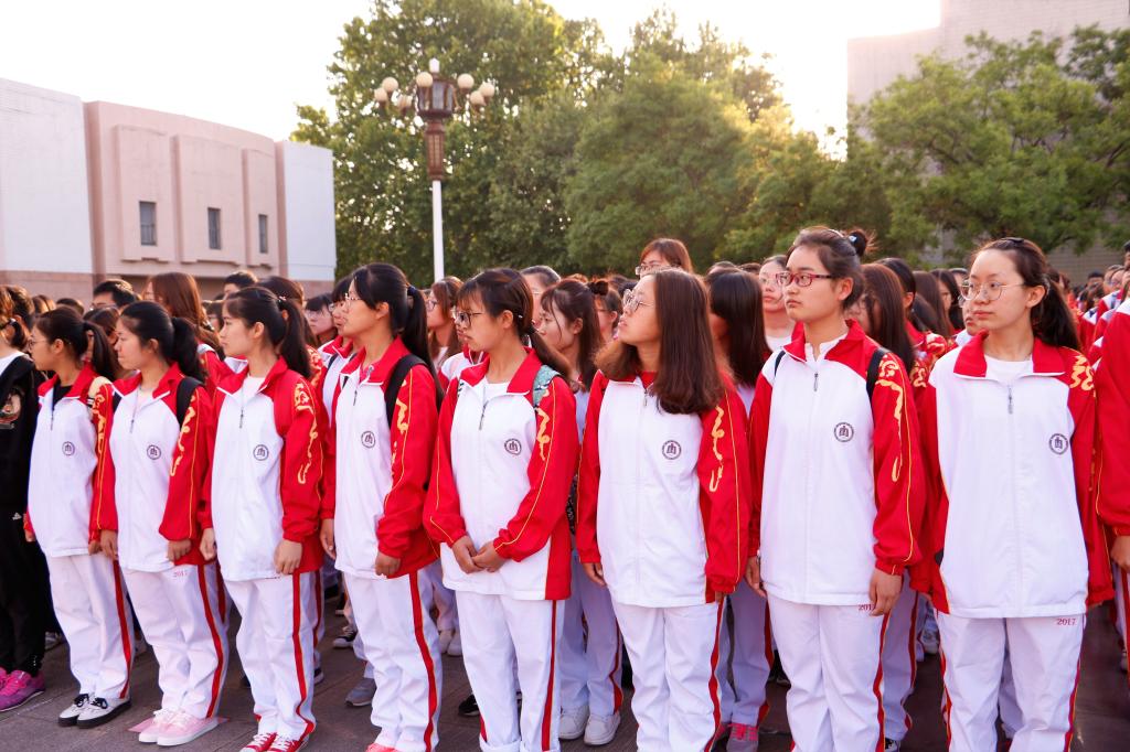 全体2017级学生带着崇高的敬意,肃立在升旗台前,精神饱满的等待升旗仪式的开始。六点半整,英姿飒爽的国旗护卫队迈着铿锵有力的步伐,护卫着五星红旗,从远方走来,升旗仪式正式开始,全场肃然起敬,行注目礼。激昂的《义勇军进行曲》缓缓奏起,承载着民族理想的五星红旗,冉冉升起,随风飘扬。随后面对着象征青春与热血的团旗,我校全体学子举起右手庄严宣誓,发出“必将为共产主义事业奋斗终生”的青春誓言,洪亮的声音响彻曲园。