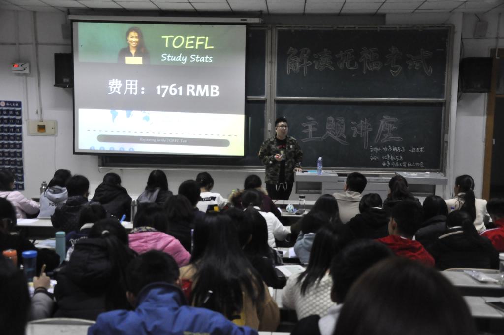 ELC协会特邀请北京新东方资深专家赵云龙为大家开设了此次讲座。讲座中,赵云龙老师依据他多年研究托福考试的经验,与大家分享了他对托福考试的理解,并就考试流程、注意事项、如何准备等为同学们进行了详细的解读。赵老师表示,在日常英语学习中,要注意学习的方法和技巧,注意素材的积累与应用,努力让自己的英语水平达到更高的高度。老师专业而又不失幽默感的语言更是让现场气氛十分活跃。现场同学,都认真听讲,并就重点内容做了摘抄笔记。全场掌声不断随着国际间交流的日益频繁以及就业竞争的日趋激烈,越来越多的人热衷于选择出国留学,而托福考试则是出国留学(美国、加拿大)的必备考试。为了让大家深入了解有关托福考试的问题,5278论坛