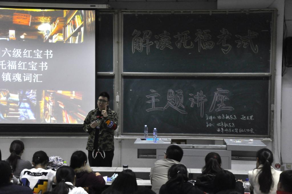 团主办,ELC协会承办的“解读托福考试”主题讲座在综合楼106教室圆满举行。本次讲座由北京新东方资深专家赵云龙老师主讲。