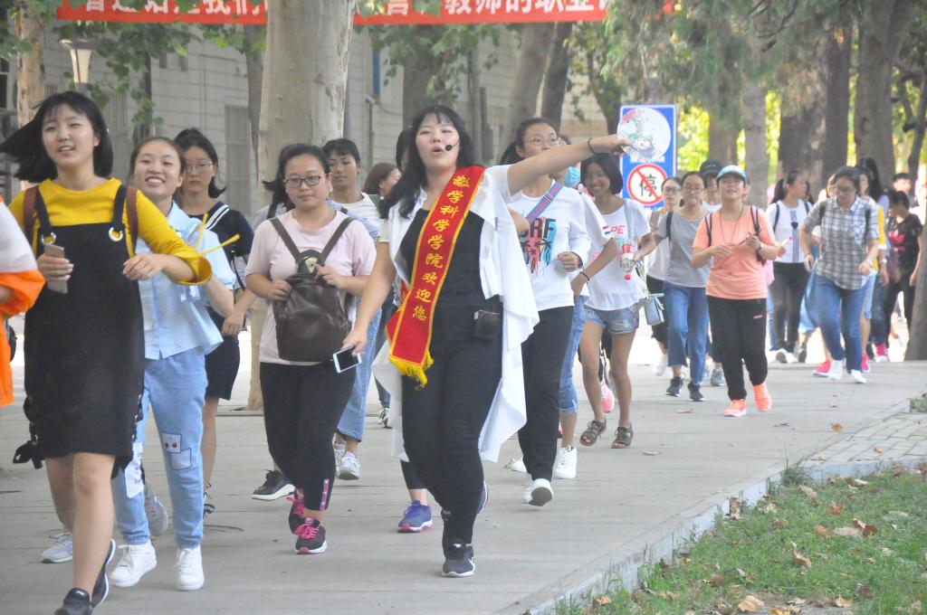 教学楼、西联教室等建筑,新生们怀着憧憬和好奇欣赏校园美景,彼此交流熟悉学校。下午四点,游览结束,队伍有序带回学院教学楼前并合影留念。