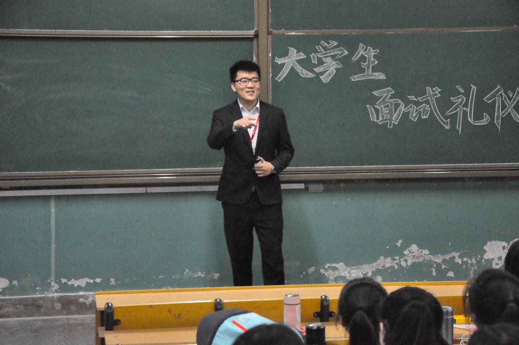 晚上七点整,大学生礼仪讲座正式开始,江老师首先点出了学习面试礼仪的重要性。然后就大学生求职礼仪面试的有关细节 ,学生一些常规的礼仪问题,面试衣服及相关配饰的搭配等知识进行了详细的讲解。江老师用饱含激情的 演绎方式,对面试礼仪做了生动详细的介绍,不时赢得同学们的阵阵掌声,极大的提升了同学们的兴趣。过程中江老师时不时与同学们展开互动,以加深同学们对讲座内容的理解。讲座期间,大多同学情绪高涨,期间欢笑不断,掌声不断。讲座在活跃的气氛中获得圆满成功。
