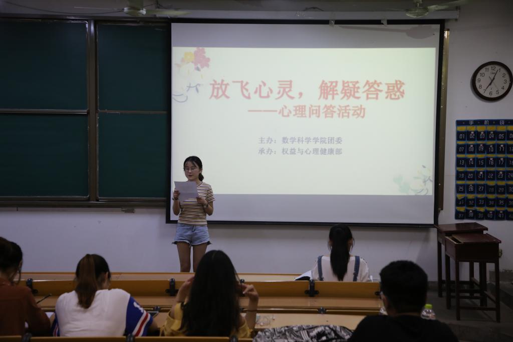 主办的心理健康月“放飞心灵,解疑答惑”——心理问答活动在数学楼圆满举行,来自全院的同学踊跃参加。