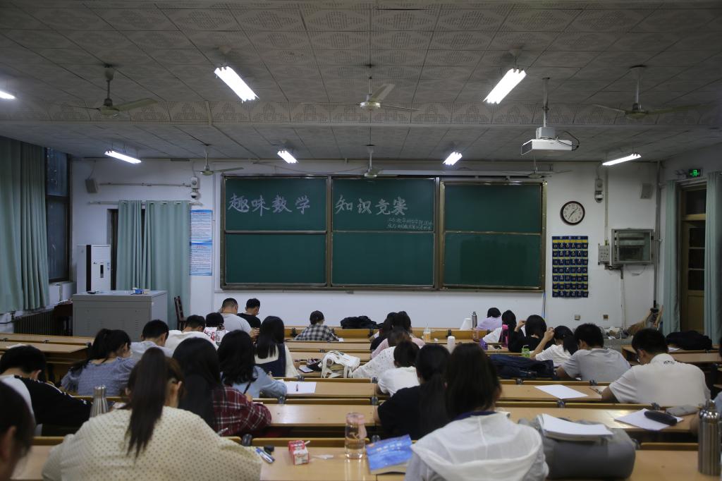 团委主办的趣味数学知识竞赛在数学楼顺利举行。本次活动由数学爱好者协会会长赵文华、副会长段风霜、庄晓娟担任监考人,共有来自全院的34名数学爱好者参赛。