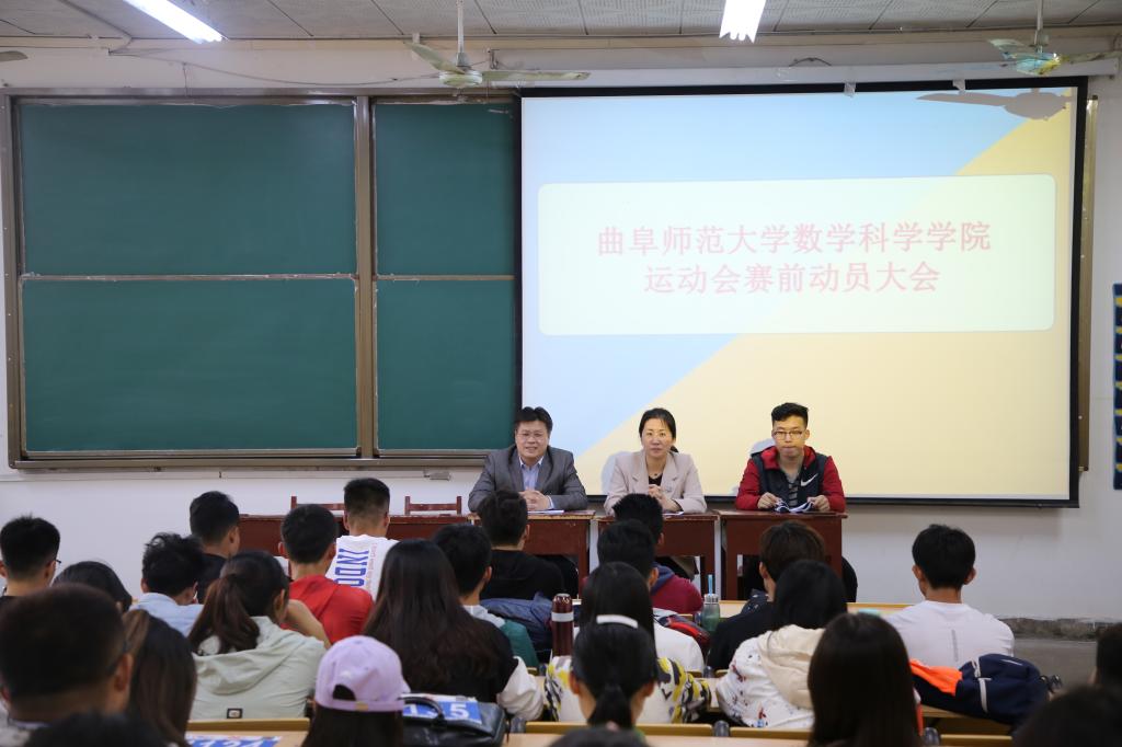 运动会赛前动员大会于数学楼101教室圆满召开。学院党委副书记刘建新、团委书记朱伟卫出席,全体运动员参加了本次大会。