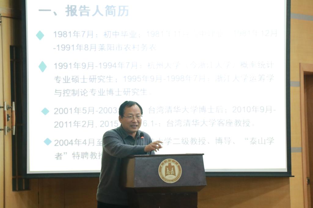 全体师生作“我的求学经历和科研体会”主题学术报告。数学与统计学院党委副书记王作茂主持本次讲座。