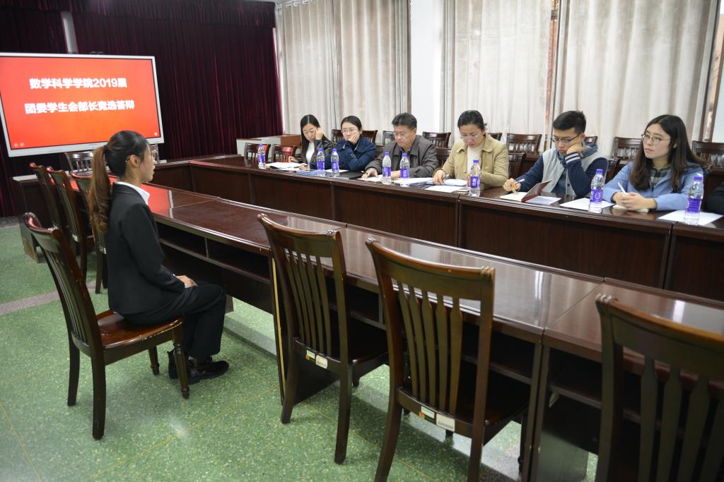 2019届团委学生会部长竞选答辩于教学楼三楼会议室圆满举行。出席本次答辩的评委有党委副书记刘建新,团委书记朱伟卫,辅导员郅艳梅,优秀学生干部代表刘丽萍,以及学生会主席团成员刘韧,刘文静,程盈淦,朱效樟。共57名同学参加了此次部长竞选。