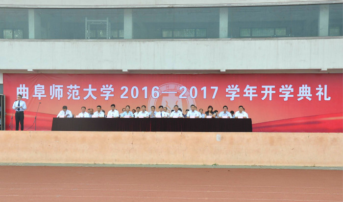 典礼在雄壮激昂的义勇军进行曲中拉开了帷幕。在庄严的国旗下,教师代表、外籍教师代表、在校生代表和新生代表分别发言,他们对新同学表示热烈欢迎,并给予新生们美好的期许和祝愿。大会最后,校长戚万学教授致辞,他首先代表全校师生员工向2016级全体新生表示热烈的欢迎。他指出,新学年同学们要做好两个准备——准备吃苦,准备经受挫折;做好两个规划——规划好四年的专业学习,规划好未来从事的职业;学会两种管理——管好时间,管好情绪;挖掘两大法宝——兴趣和专长。 他殷切地期望全体同学树立远大、正确的理想,学会把读书、思考、实践有效结合起来,加强思想品德修养,提升文明素质, 不断充实丰富自己,给自己留下一个难忘而意义非凡的大学时光。