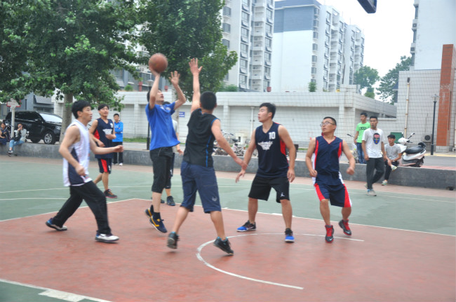 夕阳西下,运动承载未来。随着裁判一声哨响,比赛正式开始,双方代表紧盯被抛向半空的篮球,迅速起跳,奋力争取抢占先机。场外观众密切关注篮球场上的一切情况,时而呐喊欢呼,拍手叫好。在激烈的追逐抢拼中,教师代表们凭借娴熟的技巧和精明的战略赢得场外一片片掌声,学生代表们也不甘落后,以青春之姿赛出希望与光芒。他们发挥稳定,准确投篮扣篮,步伐矫健,牢牢掌握比赛节奏。在热烈的掌声中,比赛以教师代表队获胜而告终。