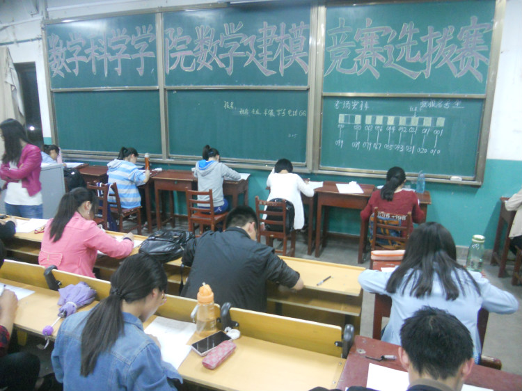及统计学院12级、13级所有专业本科生,共有96人参加。本次竞赛共分四个阶段,而本阶段主要以笔试的形式展开,对同学们进行数学知识方面的考察。同学们在两个小时的竞赛时间里,全力以赴,紧张而又镇定,势把自己最好的成绩留下。