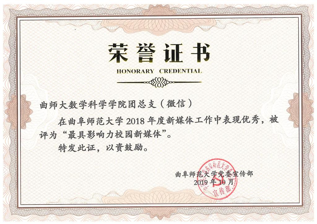 团总支微信公众号在学校190余个新媒体平台中脱颖而出,被评为“最具影响力校园新媒体”,团委学生会新媒体部被评为“新媒体工作优秀团队”,张惠老师荣获“新媒体工作优秀指导老师”,2018届新媒体部长魏书悦同学获得“新媒体工作先进个人”。这是5278论坛