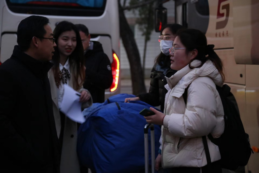 组织2020级师范生进行顶岗实习工作。2月20日清晨,同学们整装待发,前往济宁、临沂、日照、泰安等多个地区,学院党委副书记曲凤东到现场为同学们送行,学院辅导员韦宁、吕瑞源跟车随行。