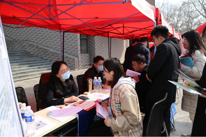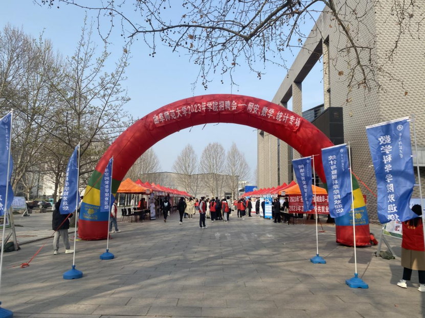 、统计与数据科学学院、网络空间安全学院在明心扬帆广场联合举办2023届毕业生招聘会。学生工作处处长姜美颖、有关学院党委书记、院长亲临会场并与用人单位和毕业生进行交流。六十余家用人单位和近千名毕业生参加了本次招聘会。