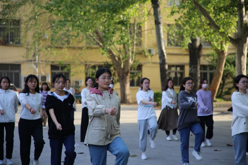 学子昂扬向上的精神风貌和团体风采,学院从3月开始,积极招募队员,确定表演形式,认真学习团体操动作并按时进行统一排练。