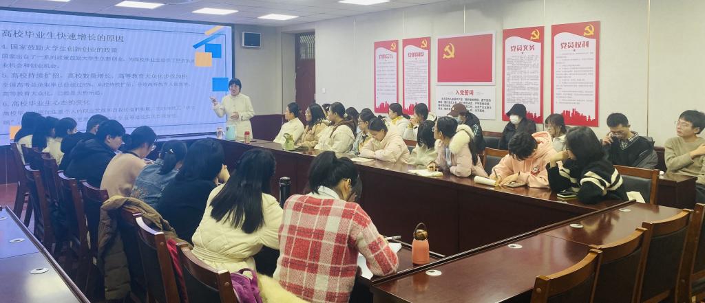 孙俊才从毕业生增长状况、增长原因、就业困难、应对策略四个方面进行了全面系统的讲解,强调要基于对当前就业形势的准确估计,以积极的心态应对就业问题,鼓励毕业生与时偕行,将个人职业发展与自我价值的实现融入到时代的洪流中。孙俊才分析毕业生存在的就业困难并提出相应的应对策略,建议同学们以解决问题为导向分解目标行为,通过实习、参加比赛等方式提升自身就业能力,掌握专业技术素养,同时保持乐观、自信与行动,成长为文理兼备的综合性人才。