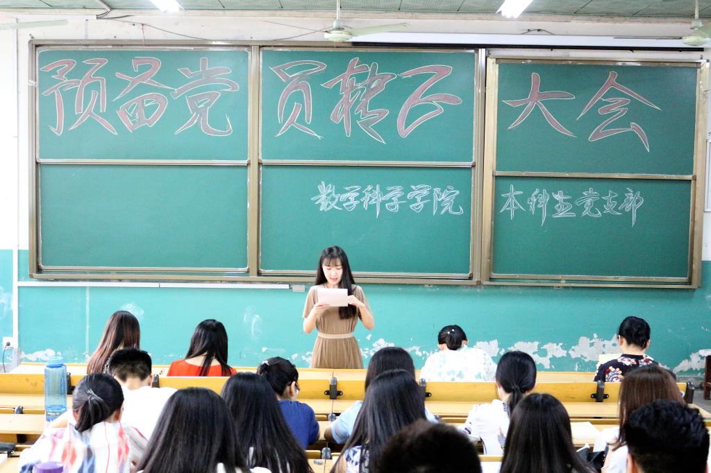 下午四点半,预备党员转正大会正式开始,本次大会严格按照规定程序进行,在清点完会议人员,并宣布到会情况后,高金颖等8位预备党员依次上台,汇报预备期一年中在思想、工作、学习等方面的情况。党小组长依次对8位预备党员在这一年里的表现情况进行了介绍,党支部书记朱伟卫老师代表支部委员会就8位预备党员在预备期间的教育考察情况进行了概述,在与会党员发表完意见并对8位预备党员能否转正进行充分讨论后,一致认为,在一年的考察期内,8名待转正同学思想上进,目标明确,积极向党组织靠拢,严以律己,起到了身为党员的模范带头作用。最后,经支部大会无记名投票表决,申请转正的8位预备党员均获得全票通过。