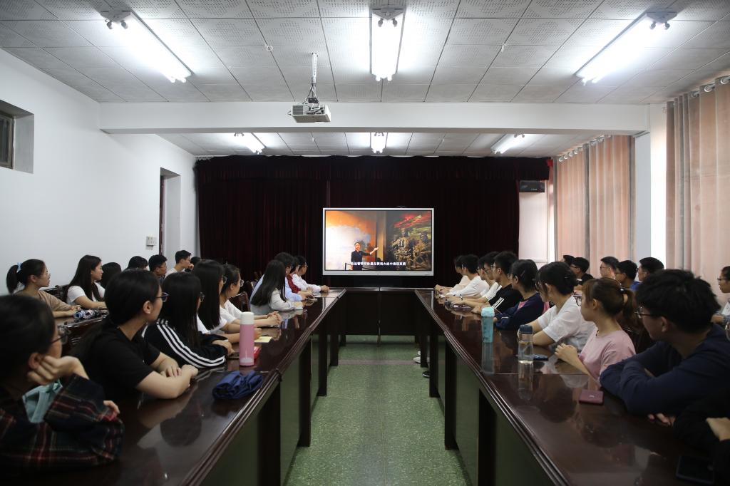 党委在三楼会议室组织集中观看《山东爱国主义教育基地党性教育基地讲解视频》。学院党委书记刘建新、副书记曲凤东、各支部书记、党员和入党积极分子代表一同观看。