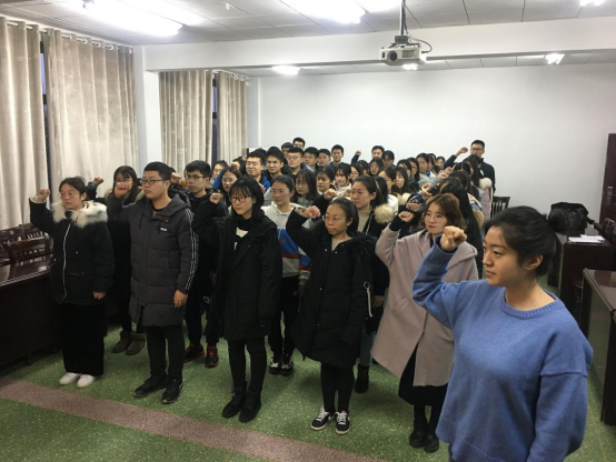 宣誓活动在庄严的《国际歌》中拉开帷幕。曲凤东指出,预备党员必须面向党旗进行入党宣誓,这是党章中明确规定的程序。党旗代表着党,面对党旗进行入党宣誓,是党员对党表示自愿承担政治责任和组织责任的决心。随后,全体党员高举右手,紧握拳头,在领誓人的领诵之下,庄严的面向党旗进行宣誓,立下了“我志愿加入中国共产党……随时准备为党和人民牺牲一切,永不叛党”的神圣誓言,嘹亮的誓言在教室中引发阵阵回响,彰显出5278论坛
