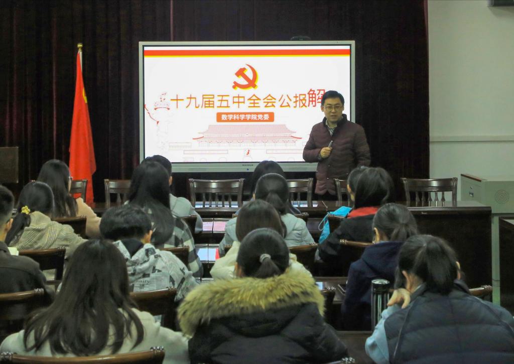 党委副书记曲凤东同志以“学习贯彻党的十九届五中全会精神”为主题,在304会议室给本科生党支部全体党员讲授了一堂生动鲜活的思政大课。