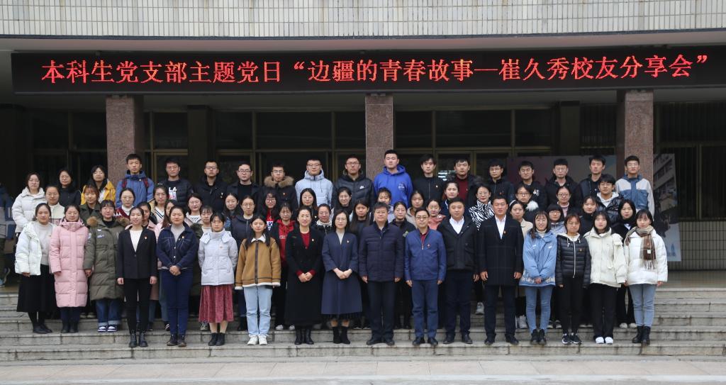 学院邀请了2010级优秀校友崔久秀同志为本科生党支部做了题为“边疆青春故事”的报告,主题党日活动由本科生党支部书记朱伟卫