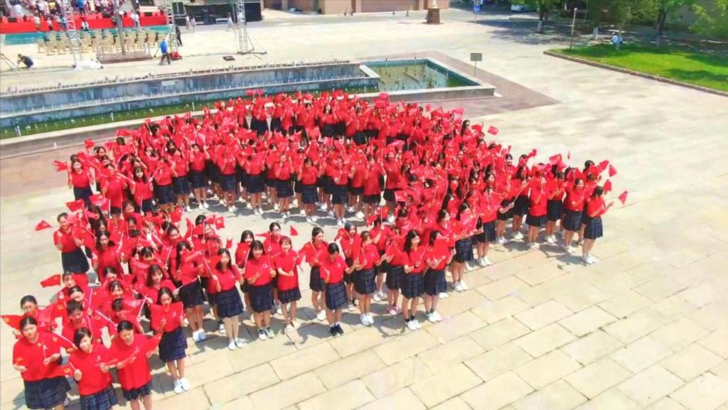 学子们,青春洋溢、热情高涨,他们用笑脸和队形向党表达最真挚的祝福。2019级张舒涵同学说到,“本次活动犹如一场时空穿梭之旅,我在队形变化中回顾感受着中国共产党的历史与今天。风云变幻,中国共产党人的精神未曾变;沧海桑田,中国共产党人的青春未曾老。作为一名大学生,接下来,我将会努力学习科学文化知识,积极参加实践活动,把人生的小我融入到祖国发展、民族进步、人民幸福的大我之中,在实现价值、升华境界中擦亮青春的底色。