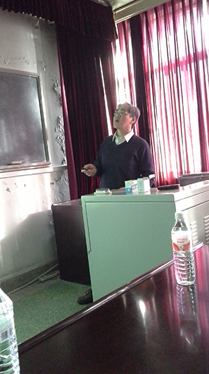 部分教师和基础数学专业的研究生作了题为“Berkovich spectra of elements in Banach Rings”的学术报告。吴志强教授深入浅出的介绍了研究Banach Ring中BerkovichSpectra的背景,并详细介绍了具体研究思路和所得到的主要结果,并给出了所得结果在Fredholm行列式方面的应用。吴志强教授对在场师生的提问也一一作了解答。